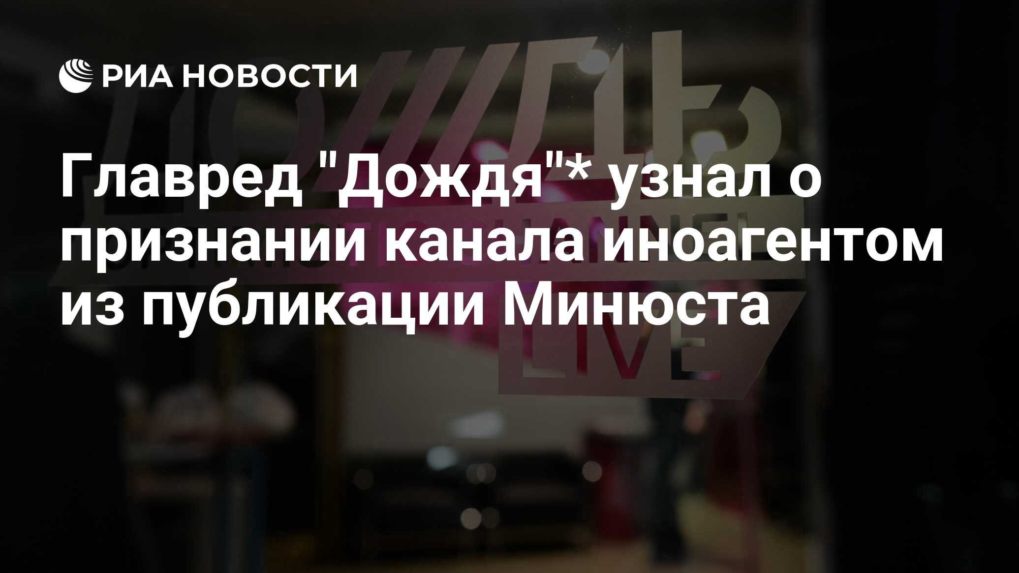 Glavred Dozhdya Uznal O Priznanii Kanala Inoagentom Iz Publikacii Minyusta Ria Novosti 20 08 2021